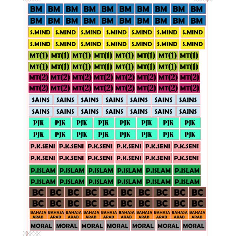 Hot Item Sticker Matapelajaran Subjek Sekolah Rendah Setiap Subjek Ada 10pcs Sticker Shopee Malaysia